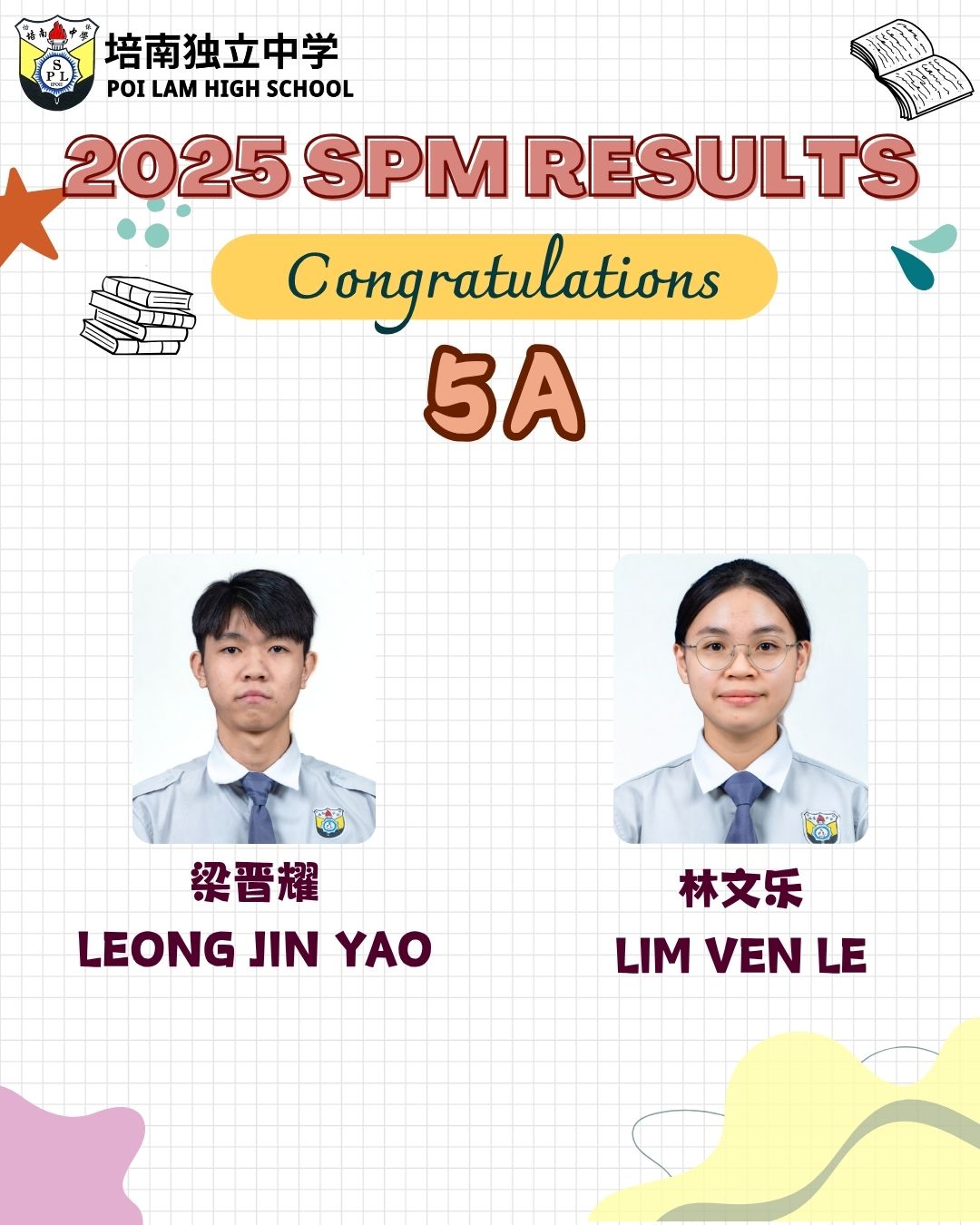 【SPM Results 2025 ✨ Poi Lam Students Shine with Strong Subject Performance】