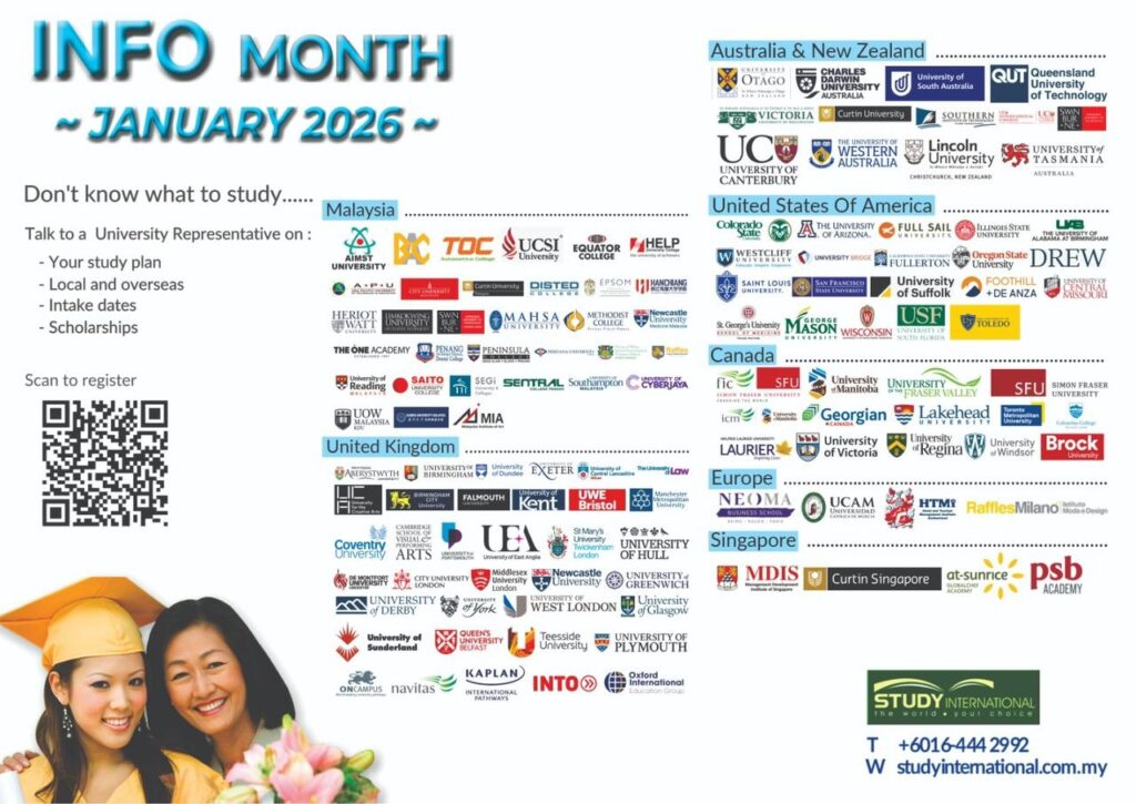 INFO Month (entire January) will assist you in finding out which study degree is suitable for you, career opportunity and scholarship availability all from our university partners.